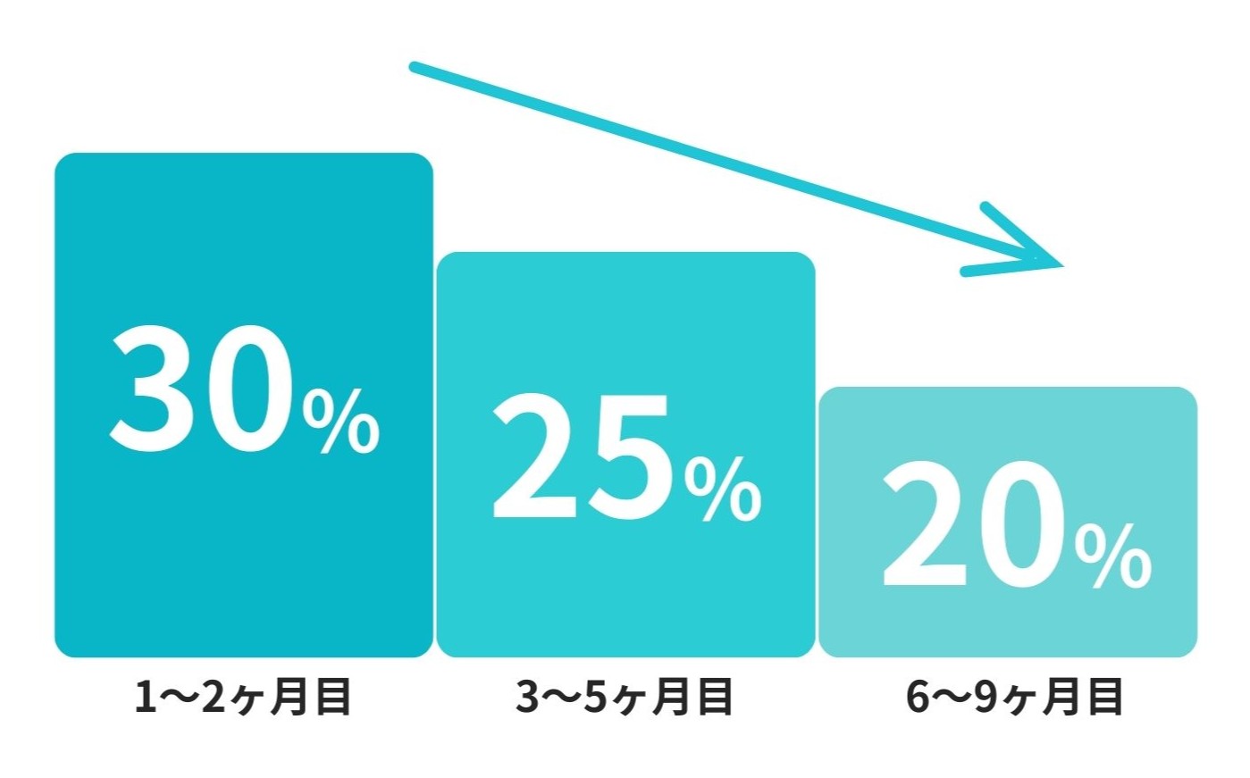 - 上記の条件を満たさなかった場合、翌月以降は通常の掲載料(30%)に戻ります